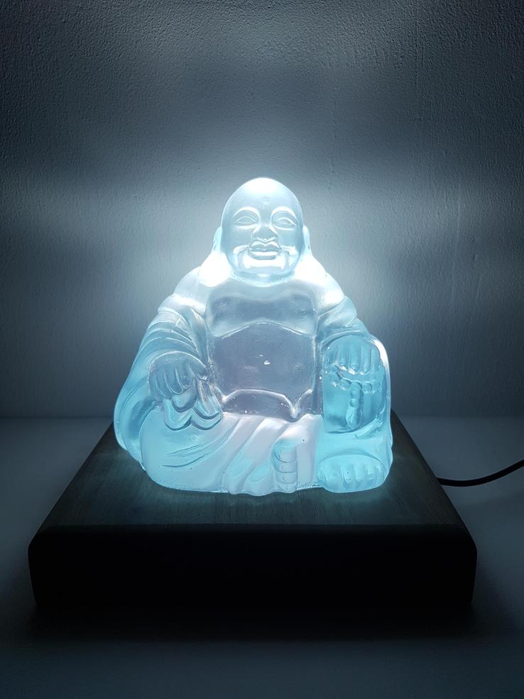 Hölzern in Kombination mit Epoxiharz und farbigem oder weissem Licht